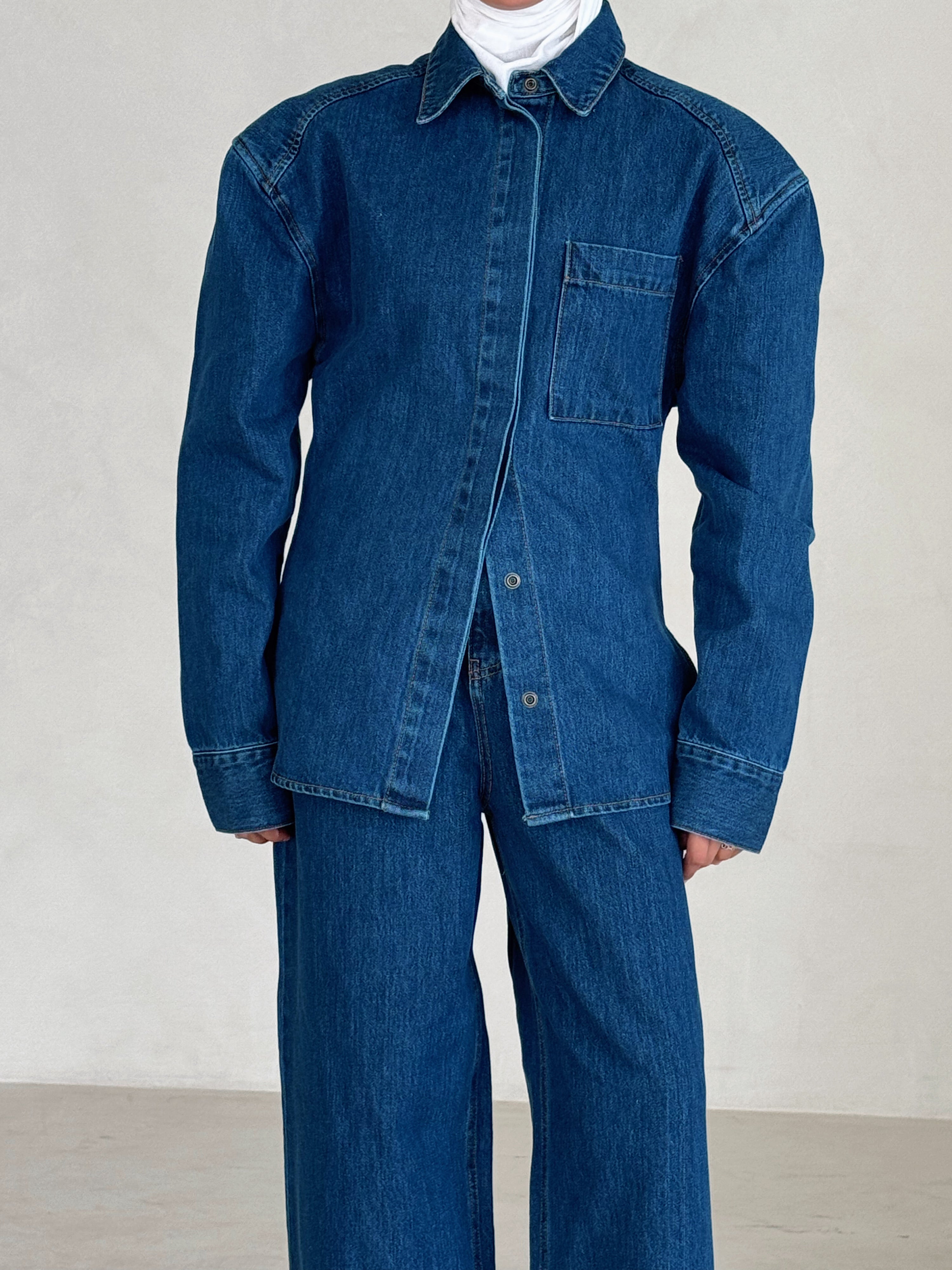 Puff Shoulder Denim Set
